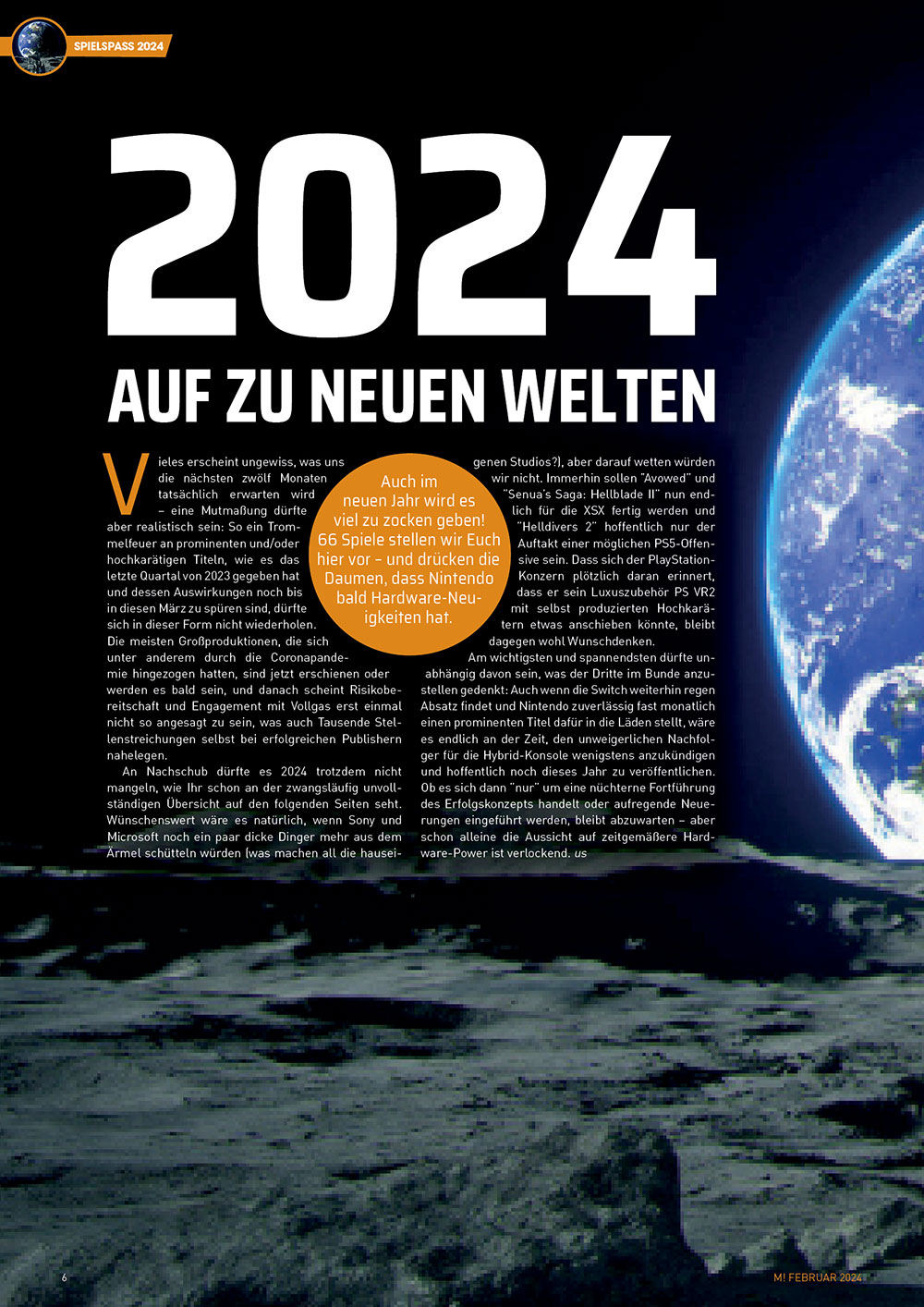 Zum Jahresanfang blicken wir traditionell auf die kommenden zwölf Monate: Welche Spiele stehen 2024 an und welche sind besonders vielversprechend? Wir haben die Veröffentlichungslisten durchforstet und 66 Games herausgefischt, die wir Euch in einem XXL-Vorschau-Special präsentieren. Darüber hinaus geben wir Euch einen Überblick aufgeteilt nach Genres – so lässt sich der persönliche Wunschzettel noch leichter füllen! Neben prominenten Namen wie Visions of Mana, Senua’s Saga: Hellblade II, Rise of the Ronin oder Suicide Squad: Kill the Justice League findet Ihr natürlich auch jede Menge Indie-Tipps.