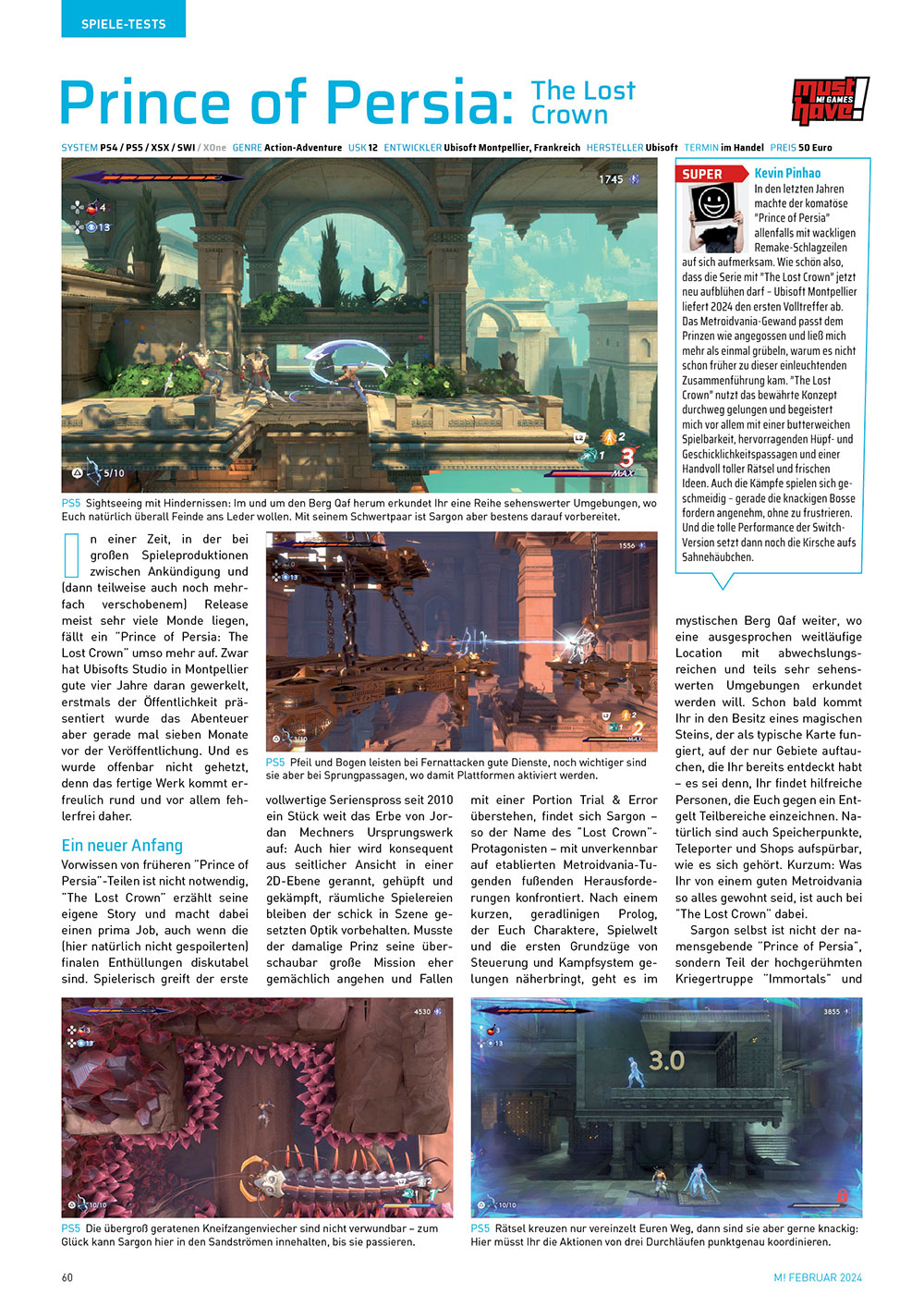 Aber es dreht sich nicht alles um die Zukunft in der neuen M! Games – auch im Januar gibt es schon Highlights im Test-Teil. Zwei davon sind The Last of Us Part II Remastered und Prince of Persia: The Lost Crown. Naughty Dogs brillantes Endzeit-Drama hat nicht nur ein optisches Facelift erhalten, sondern auch spaßige neue Goodies spendiert bekommen. Welche das sind? Das verrät der Artikel! Ubisofts 2D-Metroidvania gefällt mit stilsicherer Präsentation, astreiner Spielbarkeit und motivierendem Leveldesign – wer vermisst da schon den 3D-Prinzen? Apropos “Metroidvania”: Wer davon nicht genug bekommen kann, blättert in den Download-only-Bereich. Hier warten mit TEVI und Cookie Cutter zwei empfehlenswerte Genrevertreter, und Ihr erfahrt zudem, was ein “Motorvania” ist – lasst Euch überraschen!